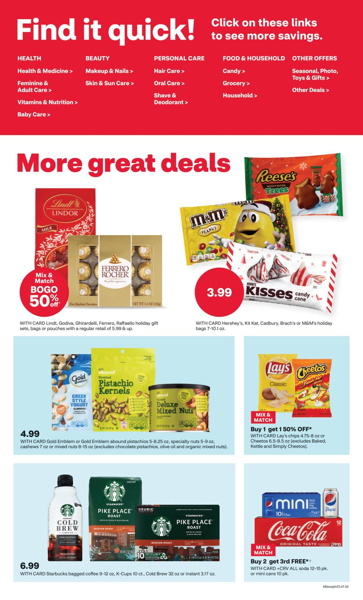 This year you can save with CVS Black Friday Deals on CoverGirl cosmetics, Ooh lala! products, Lindt, Godiva, Ghirardelli, Ferrero, Raffaello holiday gift sets, bags or pouches, Conair hair appliances, Maybelline cosmetics, W7 or L. A. Colors cosmetic gift sets, Milani cosmetics, Splat hair color, Mielle hair care, Revlon One-Step volumizer plus, Philips Sonicare protective clean, and more.